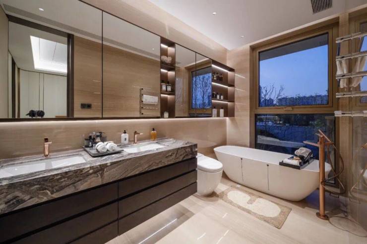 主卧套房自带的独立卫生间,居然拥有约2米的南向面宽,尺度奢侈到大平层都甘拜下风。