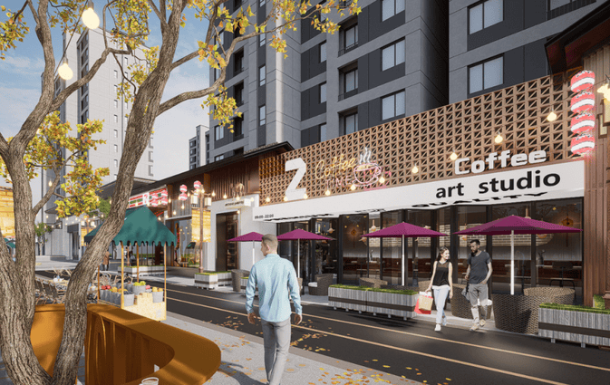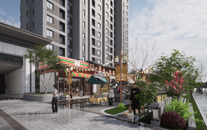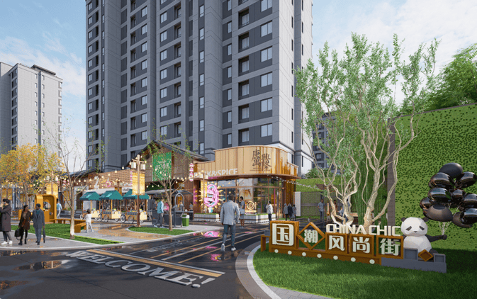 效果图 以差异化打造了一个非标定制的特色商业项目,商铺定位涵盖了活力社交、品质生活、艺术体验等各异的业态,既服务于把悦享集当作闲逛目的地的艺文客群,也有众多店铺滋养文悦华章社区生活的烟火气息。