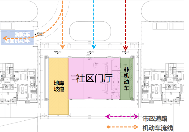 主入口承接主要出入动线,满足人行、非机动车、机动车三分离,真正实现人车分流,归家通道安心舒心,安全感便利性十足。