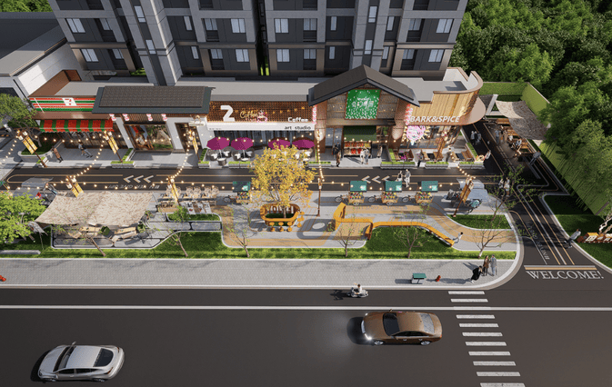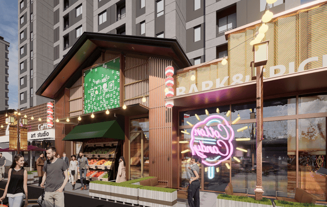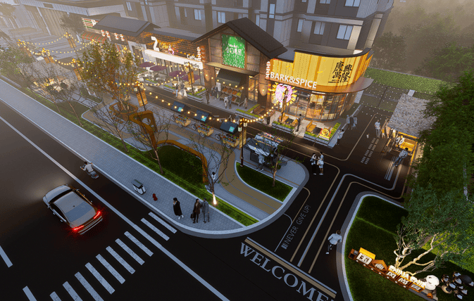 效果图 在商业氛围营造上悦享集使用了丰富的设计手法,从不同层次循序渐进地为社区商业场景注入了更多的商业氛围感和活力。