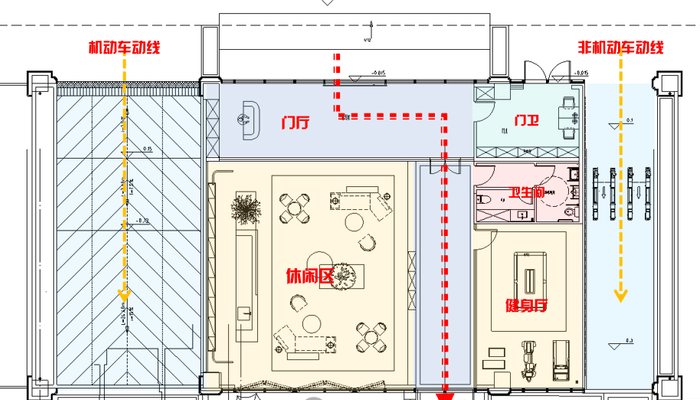 机动车及非机动车入口与路面齐平,沉稳低调的同时兼顾了车行的安全与方便。