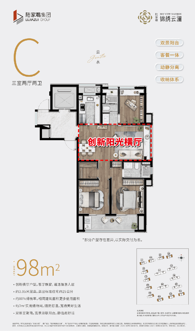 其中人气C户型对于浦东而言,是绝无仅有的产品。