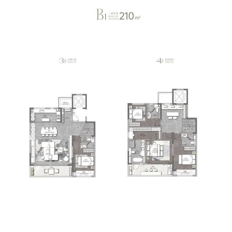 中叠:建面约210㎡4室2厅4卫