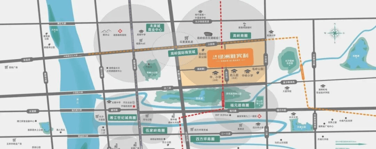 项目周边以1094号地块为核芯的秀峰商圈,将规划约25万方的大型商业,福元路河马公园,龙湾国际广场、五矿长沙 live、四方坪麦德龙、世纪金源购物中心等商业环伺。