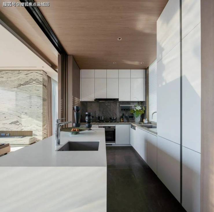 独立前院和礼仪玄关入户,一出电梯门,只见餐客厅和书房一字排开,面宽达约19.8米。一个环绕式超级露台,长度达约30米!设计糅合山居生活与当代设计风格,以静谧优雅的风格诠释国际现代奢华的诗性与意韵。