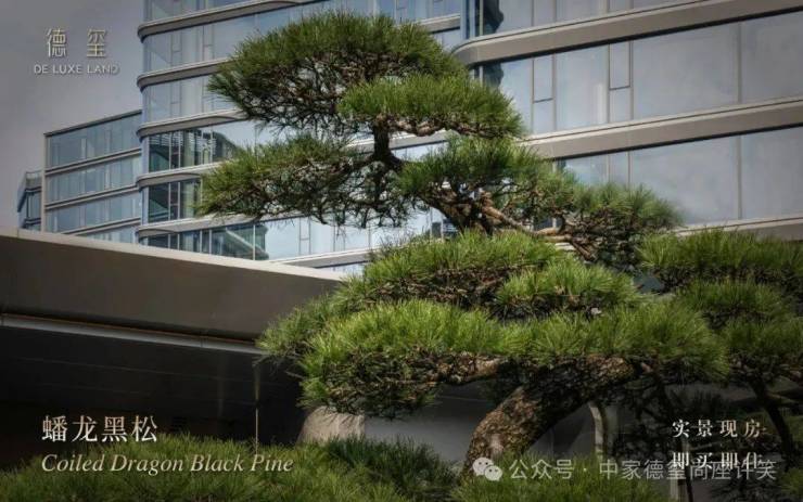 豪宅的气场从园区入口便足以窥见,以苍劲的黑松归迎业主,名贵稀有,姿态优美、器宇轩昂。