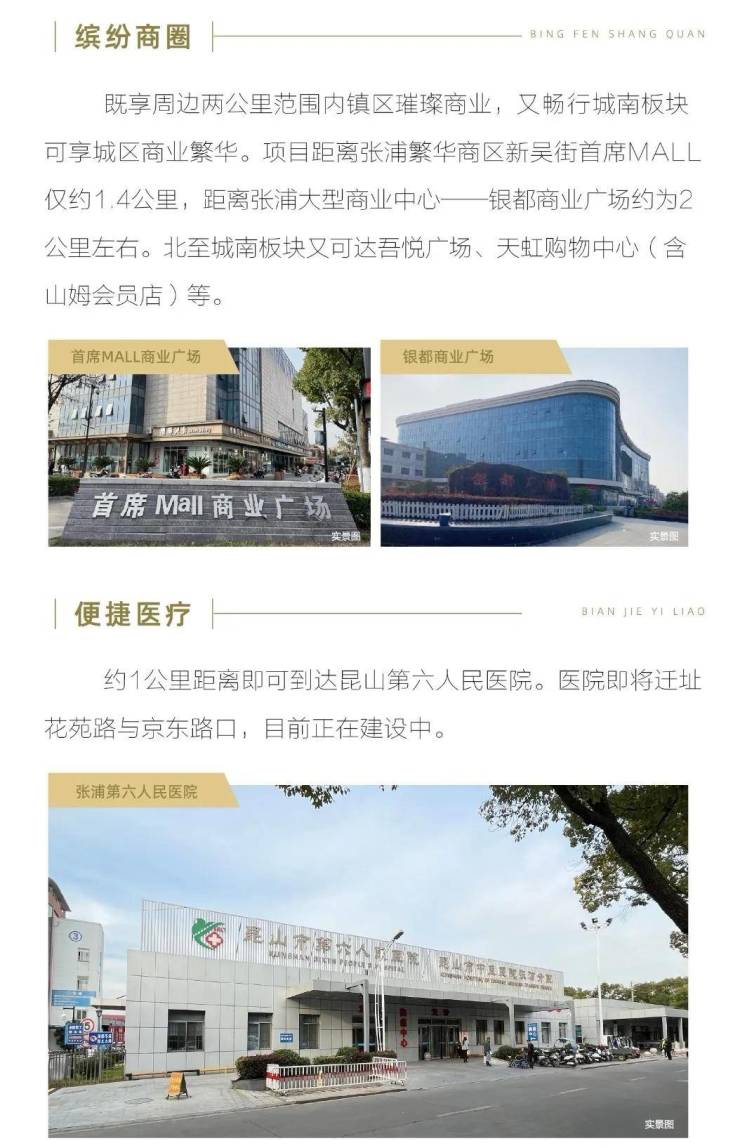 项目距离张浦繁华商区新吴街首席MALL仅约1.4公里,距离张浦大型商业中心——银都商业广场约为2公里左右。北至城南板块又可达吾悦广场、天虹购物中心(含山姆会员店)等。