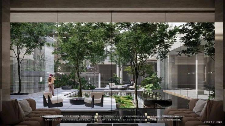 社区景观方面,项目运用室内手法室外化设计构想,将垂直景墙、悬浮观景台与叠水景观立体穿插,形成情随境转的沉浸式体验,自然元素渗透进室内,并与室内空间动态互动。