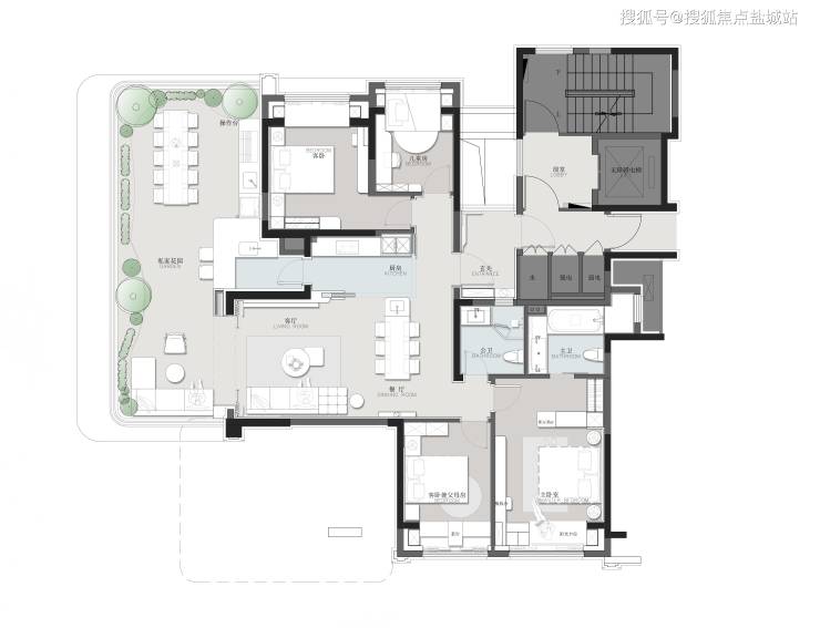 尊崇礼域:1梯1户,独享入户公共空间,270°无敌采光和视野,享受全天的美好时光
