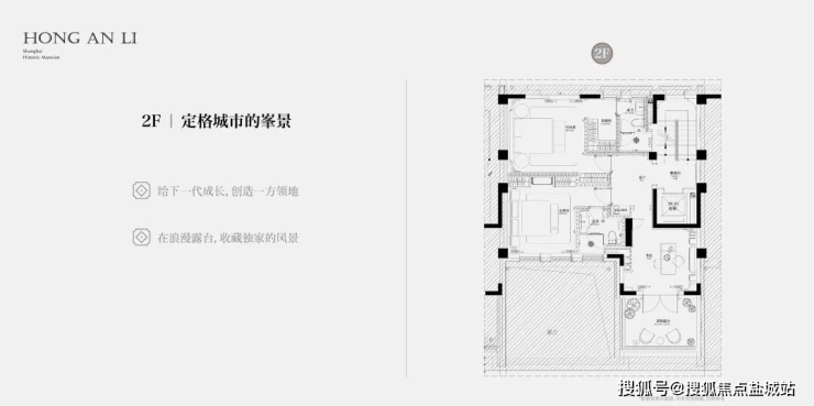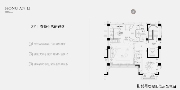 客厅互通,彰显家族生活的轩阔厅堂,2F家庭层,儿女的幸福与陪伴皆在左右,3F总裁套房式Penthouse,用具象的尺度描写人生成就的高度。