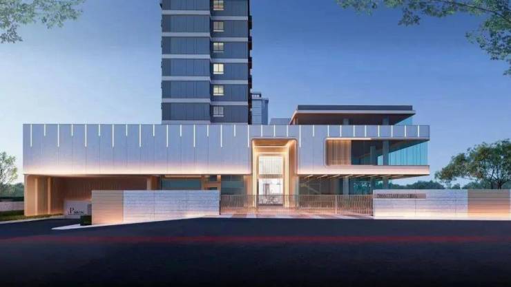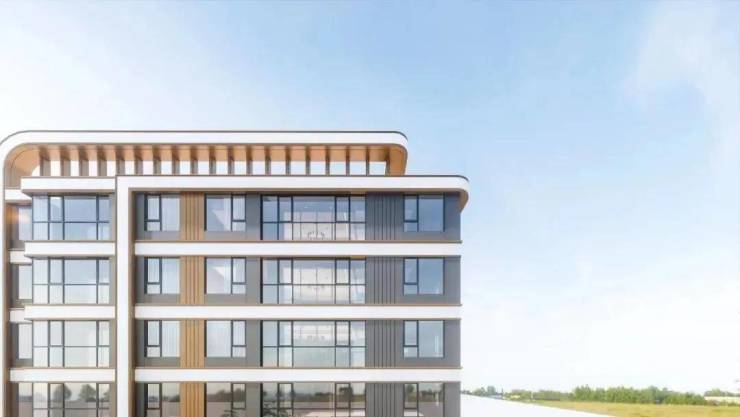 项目建筑采用虹桥飞翼屋檐造型,极简风格曲线设计,大面宽玻璃幕墙,呈现摩登+自然+文化的建筑美学。