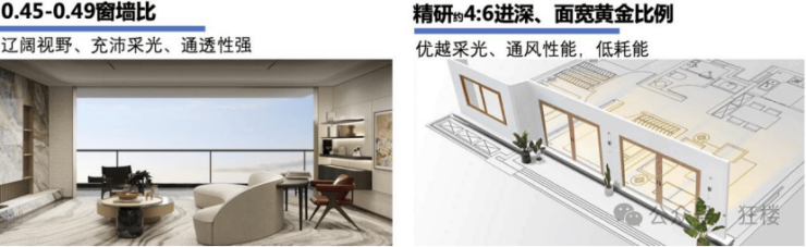 | 270°环幕视界:创新的L型环幕阳台,约6米错层挑高设计,加上0.45-0.49的高窗墙比,将光线与风景最大化地引入室内,居住尺度感瞬间跃升;