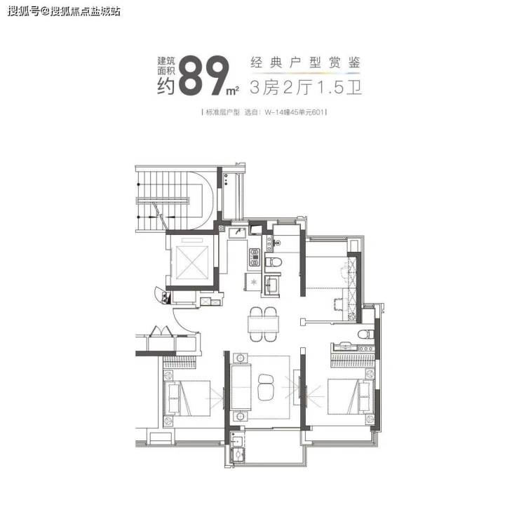 感,收纳合理。大横厅设计,连接南向大阳台,视野开阔!卫浴三段式设计,干湿分