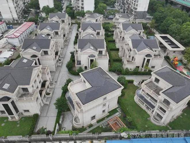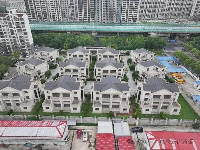 放大卫星地图来看,这个小区应该也是准现房或者现房状态,4栋独栋,16套双拼别墅(目测),建面约277-402㎡。