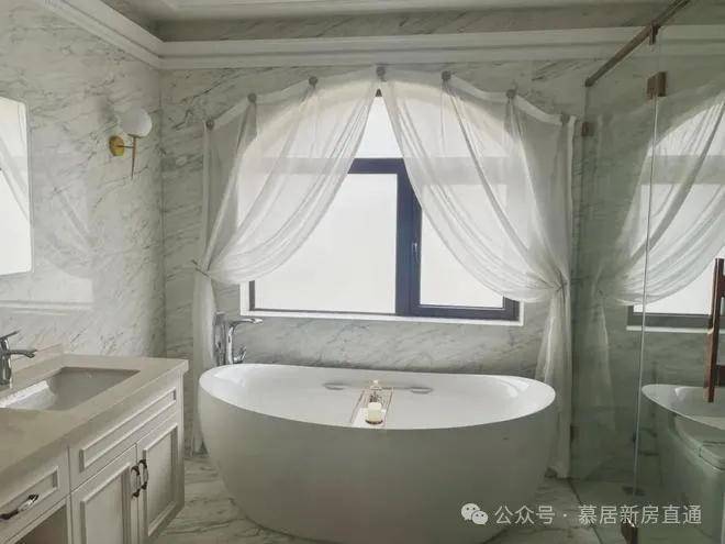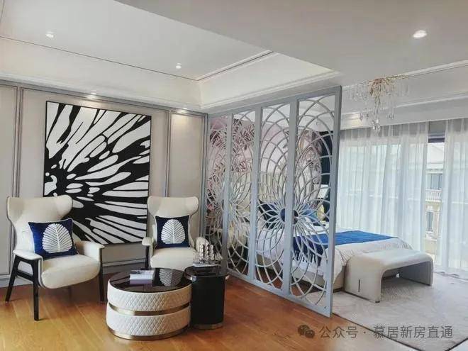 小区建筑设计以简欧风格为主,外墙干挂大理石,整体是浅米黄色调。四周采用铝合金断桥双层中空玻璃采光窗装饰和庄重石柱,为别墅的豪气程度增添色彩。样板房室内装修为轻奢和简欧混搭风格,自带高级感的设计元素彰显了住户的气质。