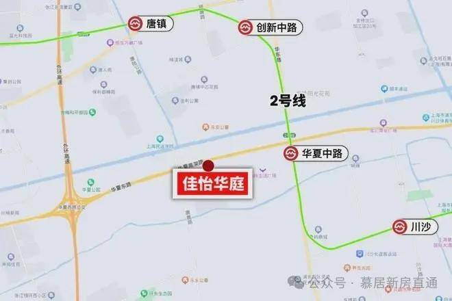 佳怡华庭应该是川沙和唐镇交界处,和唐镇仅相隔一条华夏东路,距离2号线华夏东路站约1.2km。