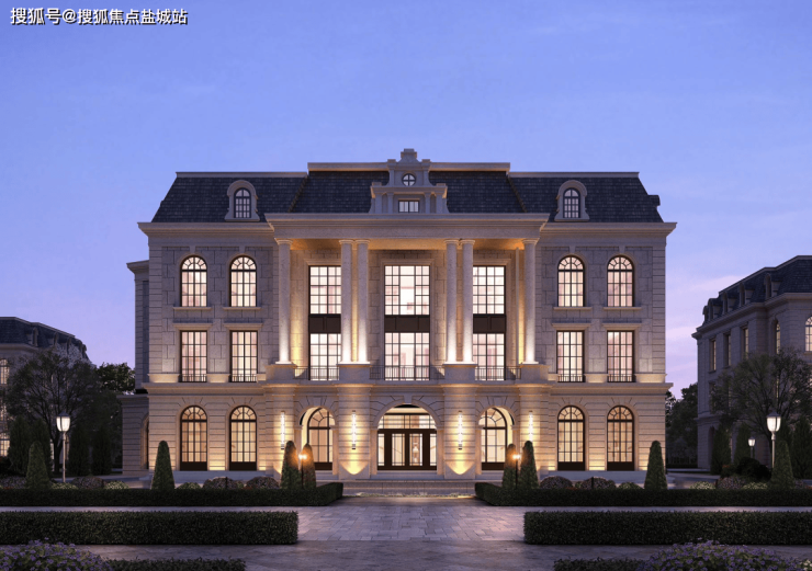 法式平墅:单层面积397-686m²,均价2.5w元/m²,通燃气,入户有独立花园,共5层,得房率88%,一户一梯