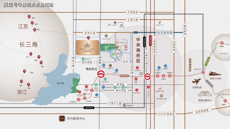 交通配套方面:以远见占位,纵享高效交通体系,20 分钟直达虹桥枢纽,1 小时辐射长三角重点城市,2-6 小时直达国内主要城市。