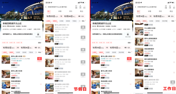 正常套房30㎡—50㎡:价格:1400元—2000元/天(家庭套房稀缺)