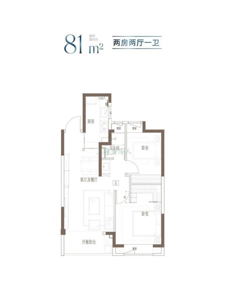 【建面约81㎡ 2房2厅1卫】