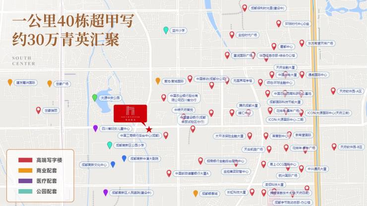 项目所在高新区中央居住中心——大源板块的天府3街,同时占据中央商务区、中央金融区、中央居住区三区之芯,是城南发展的重要中心,地段价值无法复制,地段价值超过物业本身。