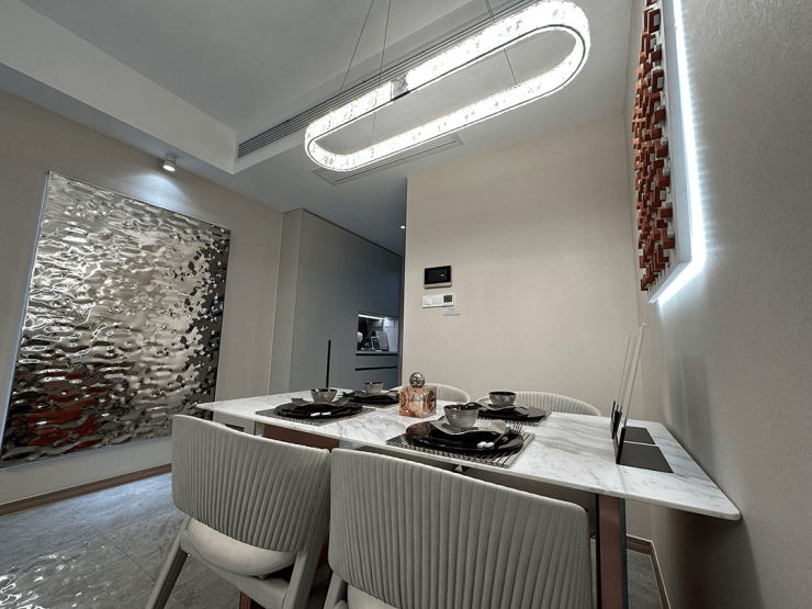 项目以高层产品享受墅级品质,诠释虹桥高阶住宅风范。墅质高层大面宽、多飘窗、全明通透格局。所有房源全部装修交付,带来兼具功能与高尔夫视野的高舒适度空间,同时满足不同家庭的居住需求。