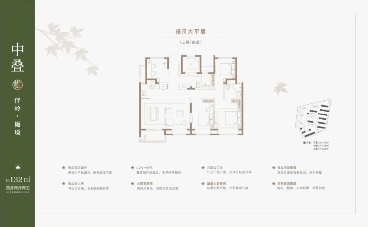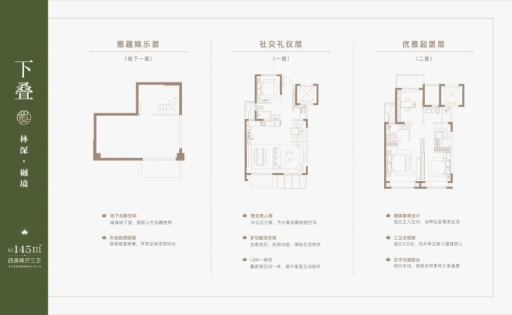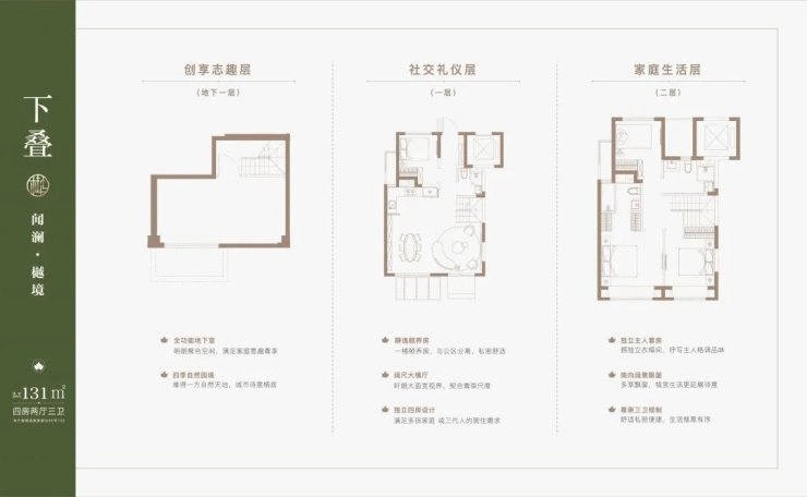 户型解析:低密叠加自带一方轩阔地下室、自然园境、阳光露台等,有天有地、演绎一层一境界的诗意生活,让生活与自然相融,让房子从居住的容器转变为美好生活的载体。