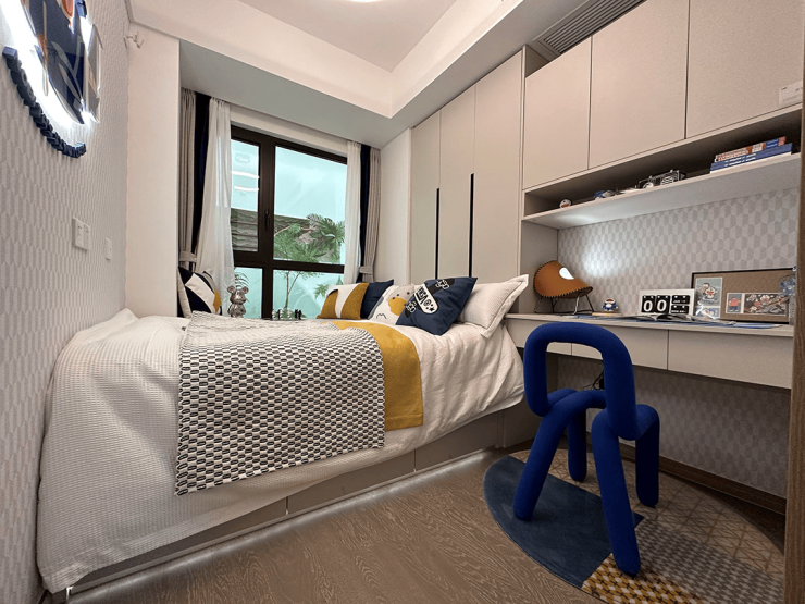 空间的设计省去了多余的过道,餐客厅一体,三房户型,可以满足新婚家庭到三口之家的升级,还能拥有一间独立书房,后期配置榻榻米,也可灵活用作客房,功能性非常完备。