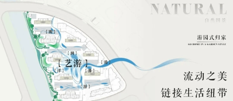 整个社区被水系环绕,繁星式楼栋布局,充满仪式感的景观与浓绿自然的植被,无论是精心设计的景观小品,还是那郁郁葱葱的树木花草,都让你在繁忙的生活中找到一份心灵的慰藉与安宁。
