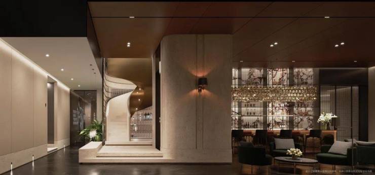 隐奢门庭:社区大门以古琦黑奢石手工锻造弧形幕墙,将珠宝镶嵌工艺融入建筑肌理;