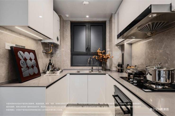 厨房配洗碗机与净水器,让烹饪更从容,让生活更便利;室内均采用通顶门框设计,在纵向上拉伸视觉效果,更显通透大气;