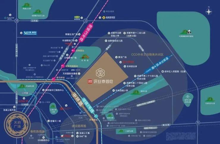 深业泰蓉府位于成华区东晖路175号,占地约120亩,容积率仅2.0,是主城少有的百亩大盘,项目由2栋7F洋房+13栋15-18F小高层+商业街(约2万方)组成。 项目紧邻成都二十二幼(东林分园),周边还有石室中学(青龙校区)、锦官城小学、成都蜀都小学等教育资源,均在项目2公里范围内。
