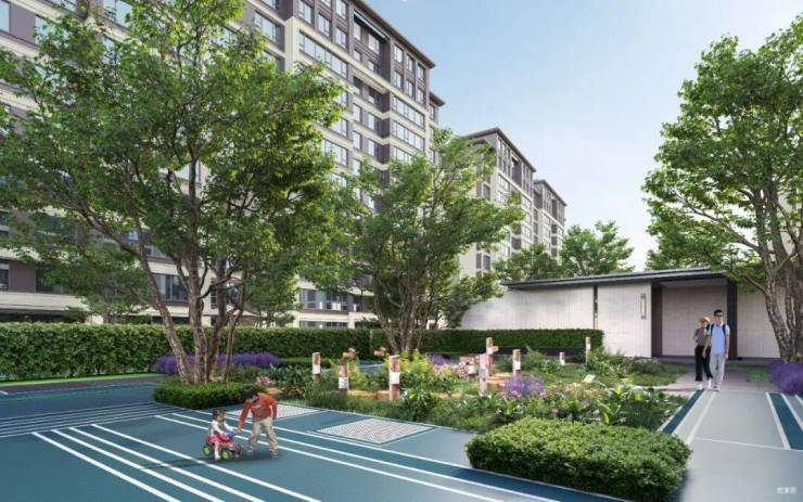 项目整体布局采取三进制礼序归家动线,以一园六景空间布局,依据功能划分,以外部景观(风帘翠幕)、归家动线(万松叠翠)、中景景观(春台明月)、洋房花园(临水红霞、梅岭春深)、运动步道(落帆栈道)打造六大生活空间场景,形成未来社区可赏可游的景观动线,迭新城市人文诗意居所。