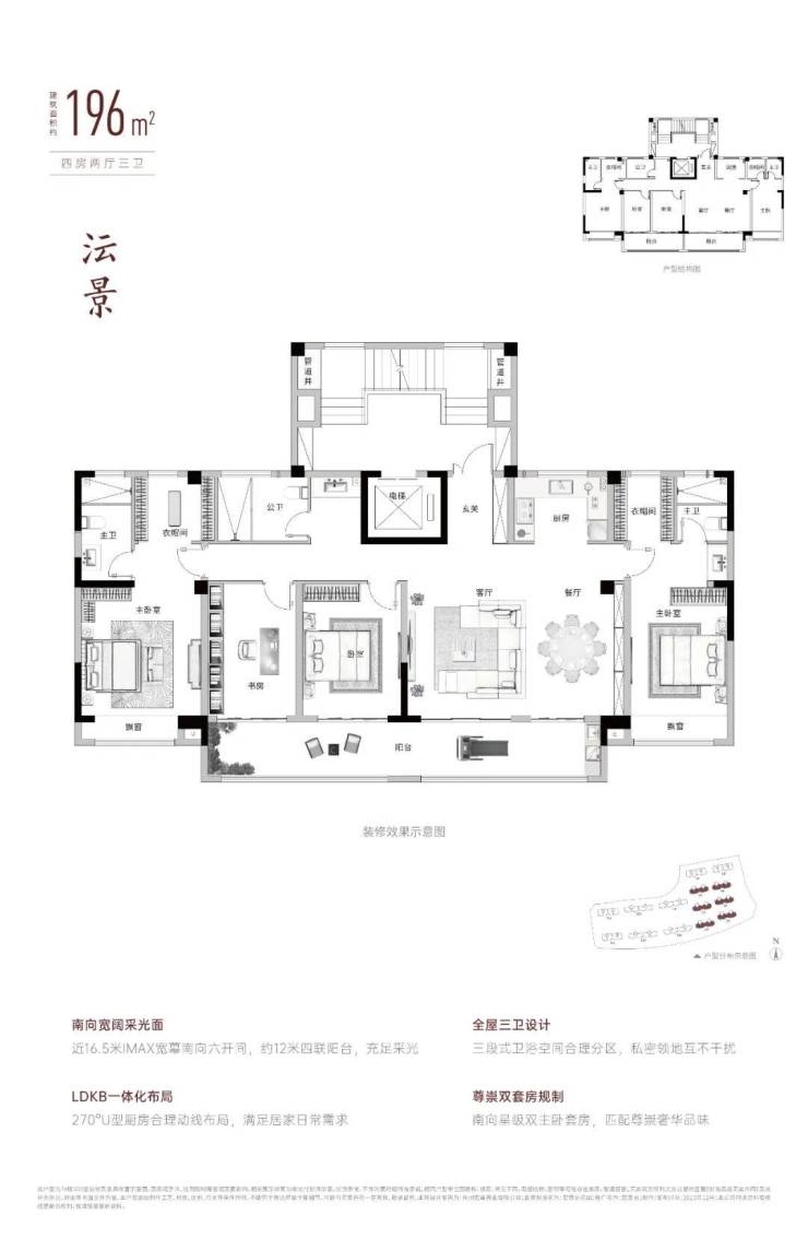👇建面约196㎡,4房2厅3卫