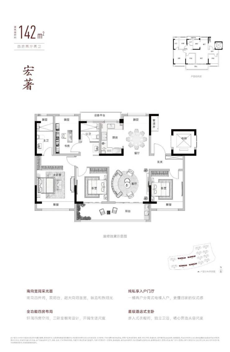 建面约142㎡,4房2厅2卫