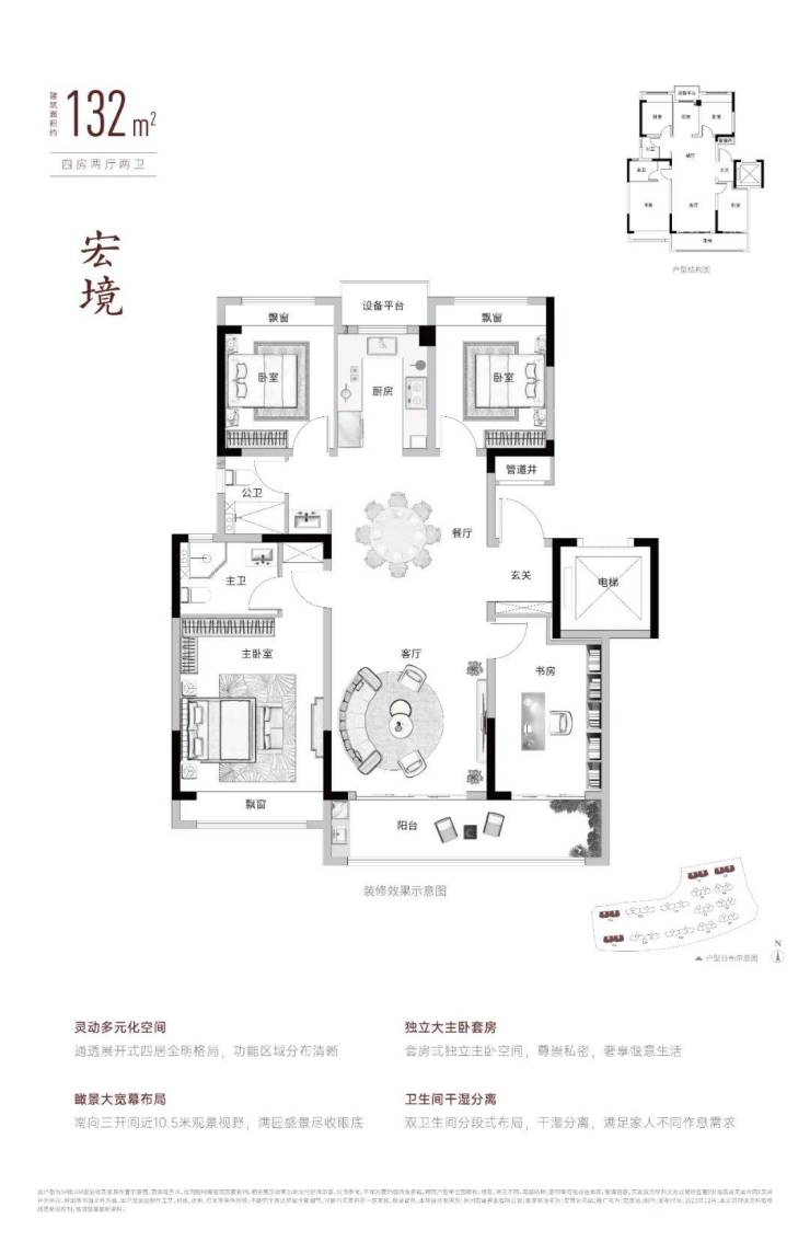 建面约132㎡,4房2厅2卫