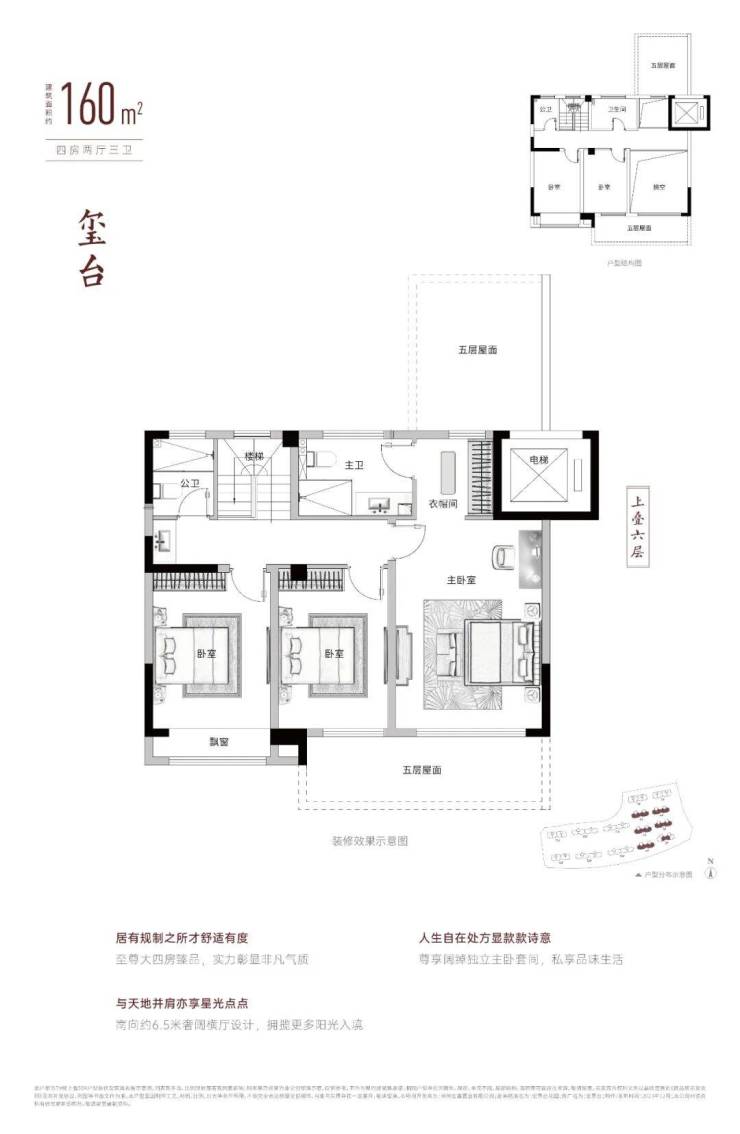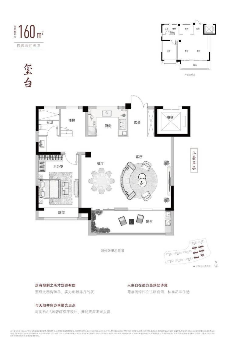 👇上叠,建面约160㎡,4房2厅3卫