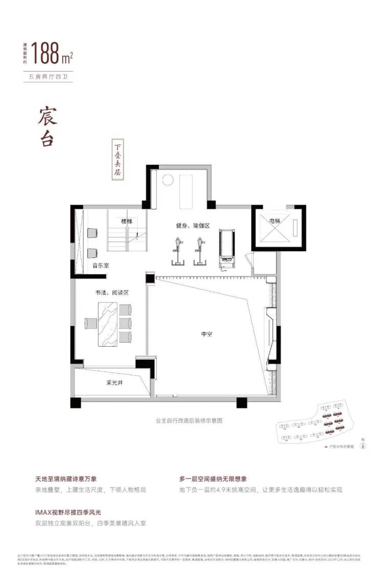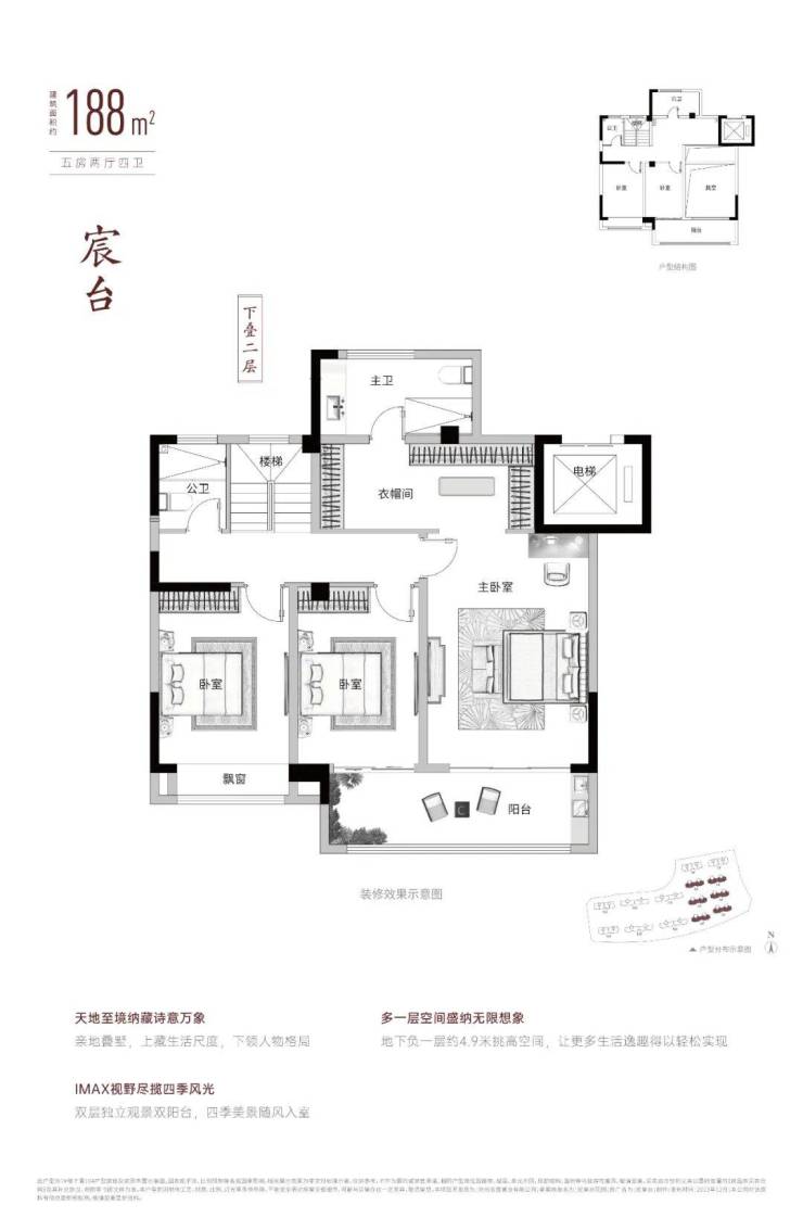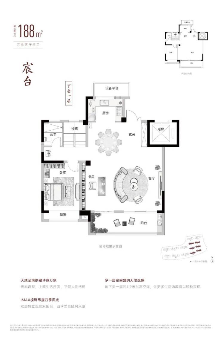 下叠,建面约188㎡,5房2厅4卫