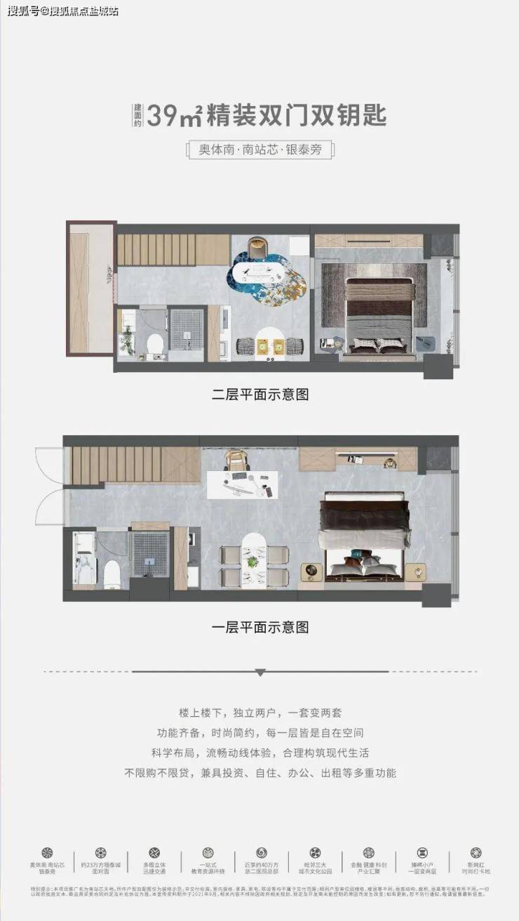 4. 臻稀小户低总价:精装双门双钥匙,层高约4.5米,买一层享两层,小面积低总价、不限购不限贷,兼具投资、自住、办公、出租、养老多重功能。