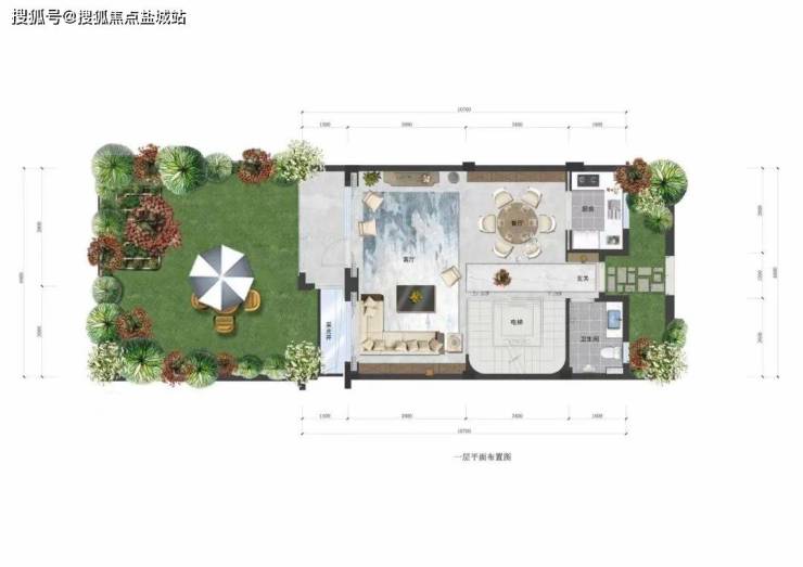 一层:私院会客厅● 独立景观餐厨空间,全开间、私家院景客厅,尊显大户风范● 左右双重私家院落,畅享大片绿色自由天地,细微处涵养情调生活!