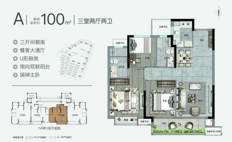 目前,云樾东方瞰景高层二开二捷,充分见证了温岭人民对新城品质的信赖。其中,建筑面积约100㎡大三房户型,更是被业界视为温岭置业必看户型之一。