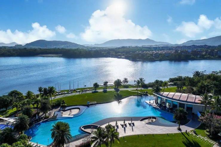 尊重土地,尊重自然,石梅半岛采用约0.57低容积率,约80%绿化率的低密设计,以约43.5万㎡低密湖岛大盘的格局,重新定义了“建筑不应与自然竞争,而是建筑隐于自然”的自然栖居哲学。在东南亚风情园林中,融入椰子树、霸王棕、银海枣、火山石等海南当地特色自然元素,让海南的火山群地貌与热带雨林生态,真正地走进日常生活环境中。