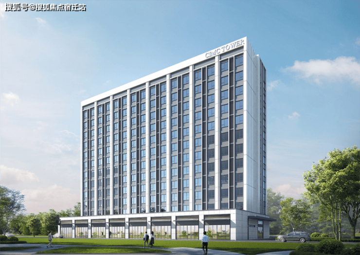 简约立面:真石漆外立面,沿街搭配玻璃幕墙、铝板,营造企业标杆形象。