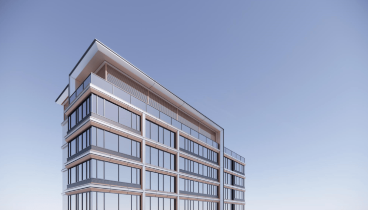 现代简约风,外立面采用大面积玻璃加铝板,打造非对称L型立面,材质造价更高,抗腐蚀性程度更高。