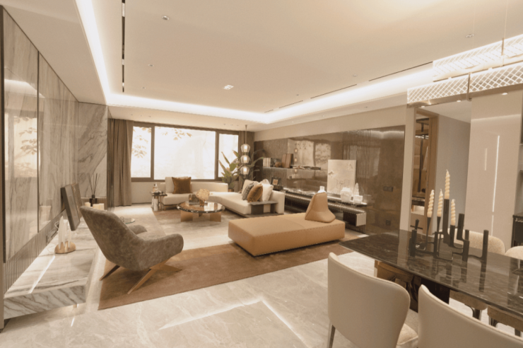 LDKG一体化设计,将客厅、餐厅、厨房动线融合,形成超尺度全景家庭聚厅,大大提高了家人成员之间的沟通互动,还有生活场景的质变。