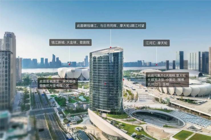 3、#居住的视野决定了房子的品级#绝美地标江景,集齐杭州沿江所有地标:大小莲花、化蝶游泳馆、日月同辉、摩天轮(在建)、国博、杭州之门、玉琮。