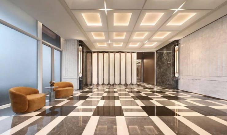 奢华从某种角度讲,需要扎实的投入。而在所有有关奢华的表述中,石材是不可或缺的载体。湾流800的首层大堂,地面和墙面,用到的石材就多达6种,不少还是进口而来。