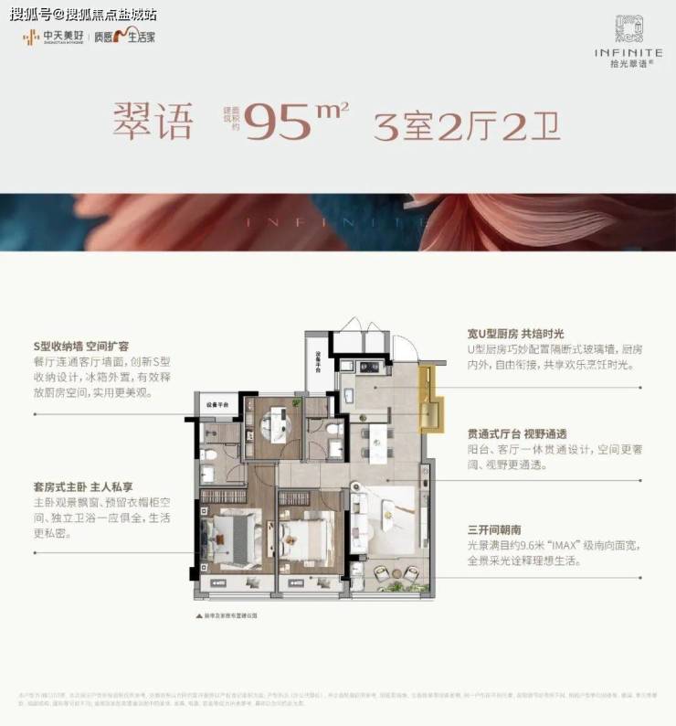 全盘共434套可售房源,只设置建面约95㎡、103㎡两个面积段,比大部分楼盘的起步户型节制了至少10㎡,足够省出一辆车了。同时,藉由“阳台只计一半面积”的优势,让每一套房子都有着90%以上的使用率!