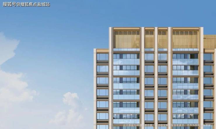 金色飘檐擦亮辨识度,南立面以大面玻璃主打,白、金、蓝灰为主调,配合部分涂料;基部用上了贝金米黄大理石,温润如月光。