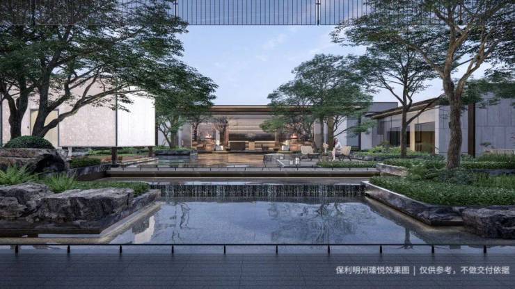 宁波海曙保利·明州瑧悦府的园林设计以中式园林意境为蓝本,融入东方禅意,营造出一个体验式园林。项目内的山水、花鸟、亭台水榭相互映衬,让业主在忙碌的生活中,也能找到一片宁静的天地。